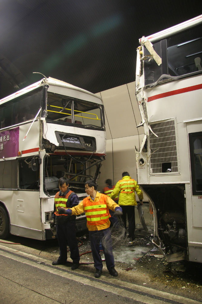 繼前日有城巴新巴在鴨脷洲相撞,昨日沙田城門隧道亦發生兩輛九巴相撞意外。一輛九巴在管道行駛時,因應前面私家車「死火」而停下;相隔約四、五分鐘後,另一輛九巴馳至卻趕不及煞停釀禍,共二十五人受傷,當中至少六名乘客重傷。運輸署強調巴士車禍一宗也嫌多,將會向巴士公司了解意外起因。