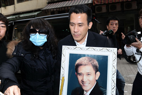 圖:米雪(左)以未亡人身份和尹佬胞弟為尹佬舉行葬禮