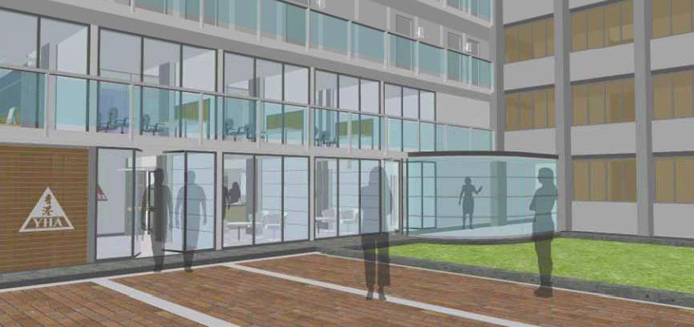 圖:美荷樓活化為青年旅舍,香港青年旅舍協會建議地下外牆改換為落地玻璃(模擬圖)