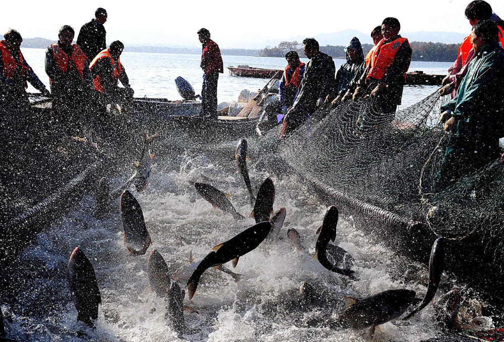 圖:漁業人員在收網捕魚(資料圖片)