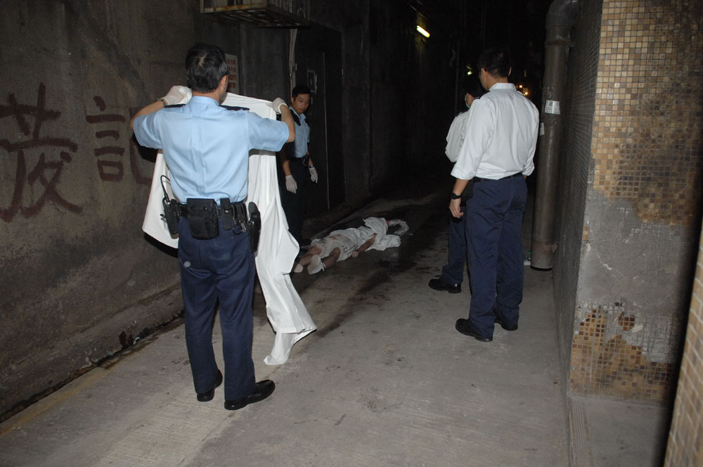 事發昨日凌晨三時零七分,有大廈管理員巡邏時,發現上址後巷有人在離地約七呎的冷氣機鐵架吊頸,大驚報警求助,救護員接報趕至將吊頸者解下,證實已死亡毋須送院。因死者頭額有腫瘀,頸項及雙膝布滿傷痕,不排除發生命案,立即通知上峰,大批探員封鎖現場蒐證,在查實身份後,立即通知家人到場認屍及助查。其母聞訊趕到,看見兒屍遍體鱗傷,一度以為遇劫抗賊遭毒打,情緒激動大呼「做乜打成咁?做乜唔畀錢佢哋?」她需親友及在場警員安慰,後因激動暈倒,由救護員送院治理。