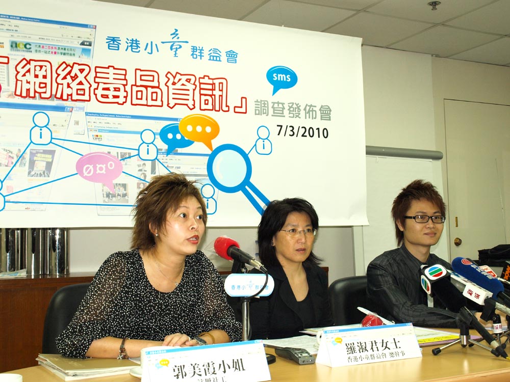 另外,小童群益會根據禁毒常務委員會主席石丹理的行為意向量表,推算出受訪者上網時間越長,未來兩年沾染毒品以至吸煙、醉酒和性行為機會越高,例如吸毒傾向率高的約百分之六,因為受訪者經常瀏覽毒品資訊則戒備心減弱。該會社工何振宇說,通過焦點訪談,顯示一些對毒品好奇或面臨升學以至戀愛疑惑的青少年,接觸鼓勵吸毒資訊後,較難抵抗毒品誘惑。一些網誌甚至肆無忌憚鼓吹吸毒,介紹混雜毒品效用包括吹噓性能力、逃避警方查緝方法,並提供毒品價格和銷售場所。該會建議網站或網絡公司設「網上毒品通報機制」,一發現鼓吹吸毒訊息,即時連結警方、網絡公司以阻截。