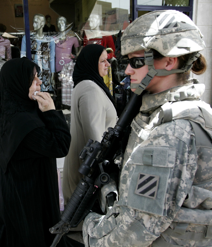 圖:美軍女兵在巴格達街頭巡邏(資料圖片)