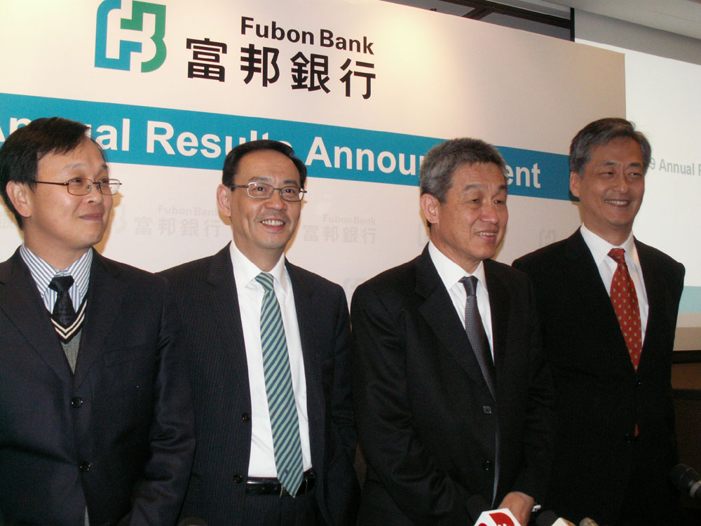 圖:左起:富邦香港高級副總裁兼財務主管王浩人、執行董事兼金融市場部主管葉強華、董事總經理兼行政總裁梁培華、執行董事張明遠(本報攝)