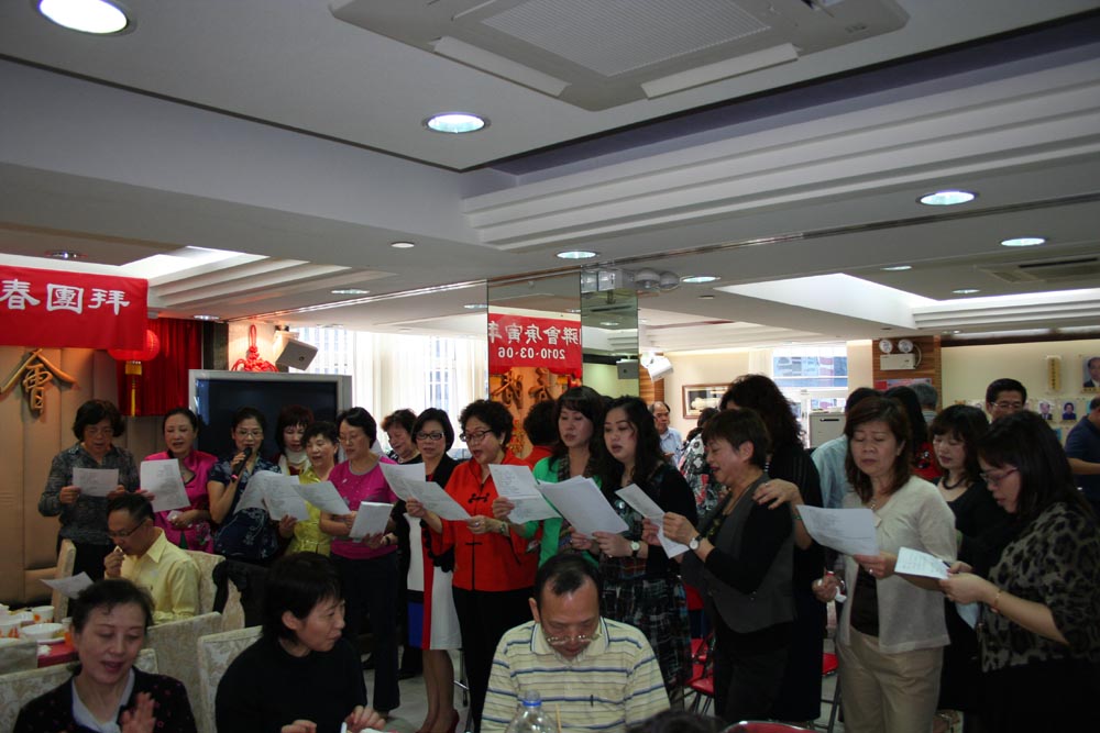 在與會者嘹亮的梅州聯會歌聲中,團拜揭開了序幕。會長余鵬春首先代表聯會熱烈歡迎參與團拜的各界嘉賓友好。他說,團拜活動已進行了4、5年,得到會員和各界友好的大力支持,希望藉這一年一次的聚會,與大家聯絡一下感情。是次的新春團拜,就由該會婦女部、青年部全權操辦,希望大家能感受到她們的一片心意。臨近三八婦女節,他祝女會員青春常駐,心想事成。