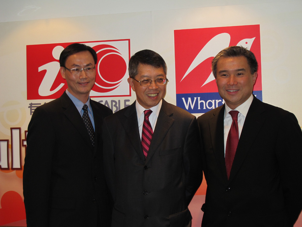 圖:左起:有線寬頻財務總裁關則豪、主席吳天海及九倉電訊總裁馬惟善(本報攝)