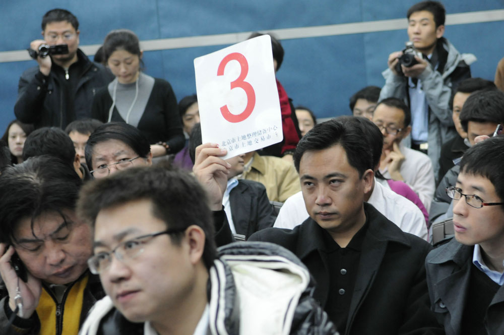 圖:持三號牌的北京遠豪置業有限公司,一舉拿下大望京村地段土地(本報攝)