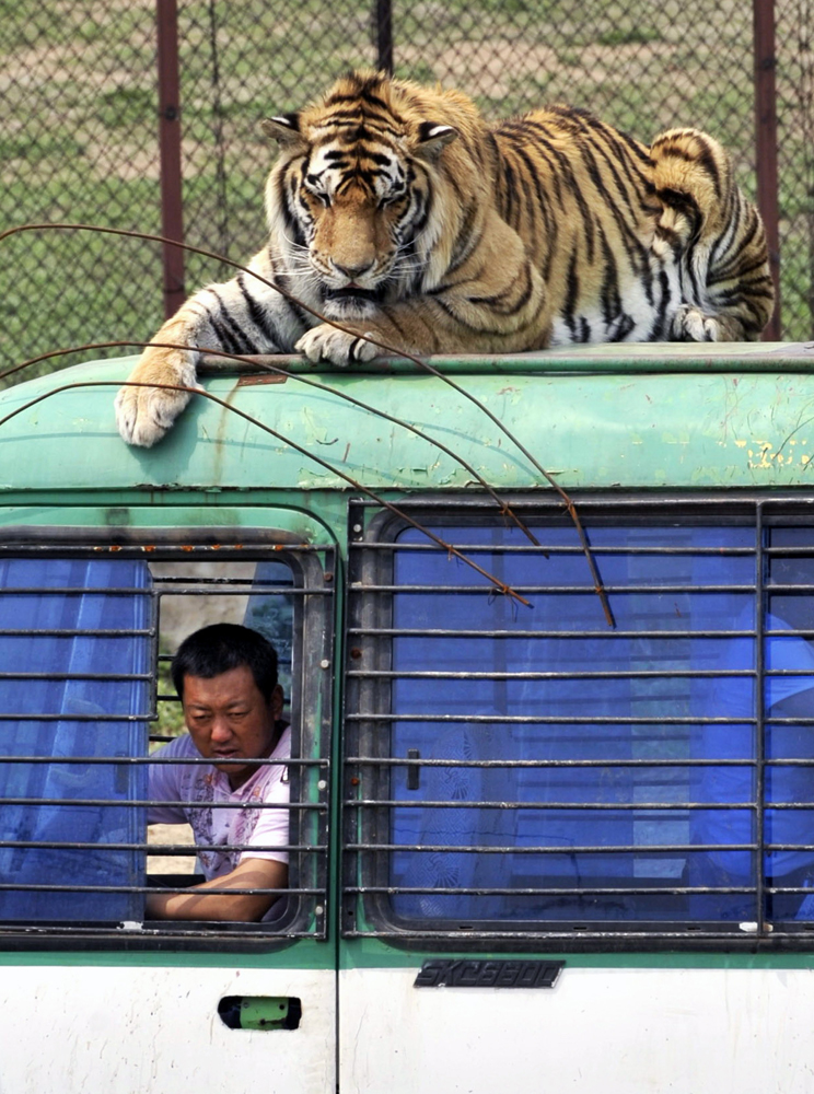 圖:圖為2009年5月7日在瀋陽森林野生動物園拍攝的東北虎。經過長時間的「折磨」,有11隻虎已經離奇死亡了(美聯社)