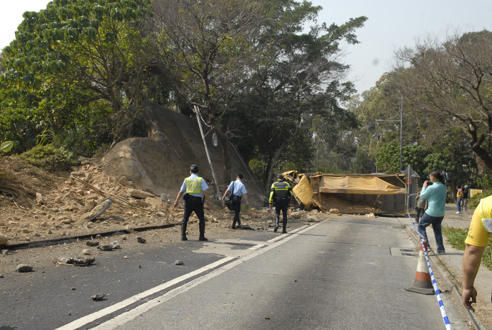 圖:泥頭車當日在林錦公路失控翻側(資料圖片)