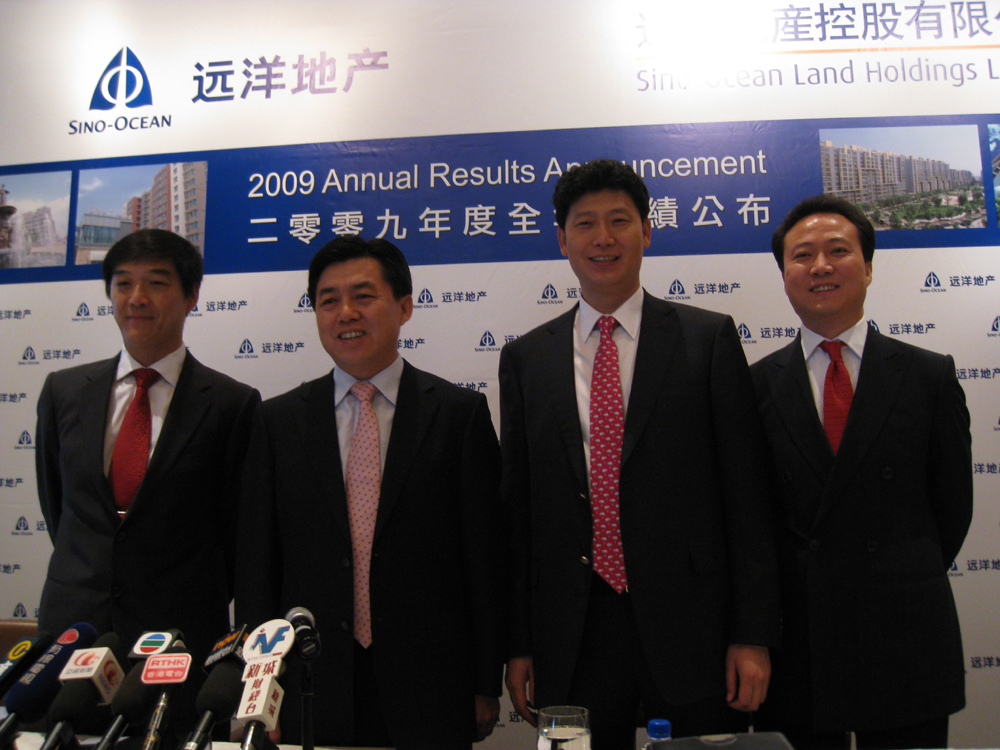 圖:左起:遠洋地產首席運營官張占海、主席兼執行董事張鋼、首席執行官盧文兵和首席財務官王岱宗