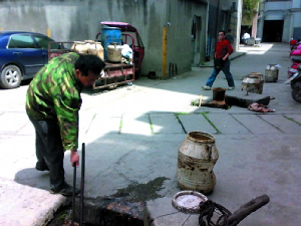 圖:餐飲業人士透露,「收潲水的」掏地溝油可能用來「做肥皂」 (互聯網)