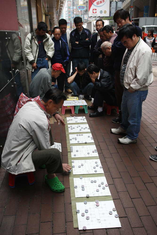 旺角朗豪坊外,鎮日有人以「殘局」招徠。只見兩位棋士一步一驚心,每下一着均費煞思量,以免招來「一子錯,滿盤皆落索」的慘痛敗局。