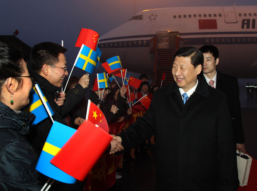 習近平是在結束對俄羅斯、白俄羅斯和芬蘭的正式訪問後抵達這裡的。瑞典是習近平此次歐洲之行的最後一站。習近平訪瑞陪同人員工業和信息化部部長李毅中、外交部副部長王光亞、國家開發銀行董事長陳元、商務部副部長高虎城、中央政策研究室副主任施芝鴻等同機抵達。