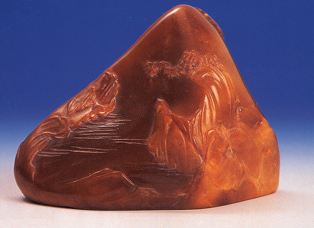 石卿雕薄意的壽山石章及小件,乃不想把較多的上佳石材剔除,因好的石頭瑕疵甚少,若胡亂作透雕或深浮雕,無疑破壞石材,是愛石者極不願意做的事。薄意非但可以雕刻淺薄細緻,而且更富詩畫意境;能精妙入神,更自賦天趣。