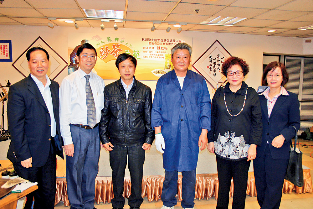 日前,「杭州天目山龍井茶香港推廣會」在裕華國貨六樓舉行。出席該場活動的裕華國貨董事經理余小春,世界茶文化交流協會副會長、精藝貿易公司茶藝軒董事總經理劉正慶,浙江臨安香雪茶業有限公司總經理唐妙火,裕華國貨高級經理曾麗瑛、梁勇犇以及杭州炒茶名師陳秋松等。陳師傅即場為大家演示了平日難以見到的炒茶過程。