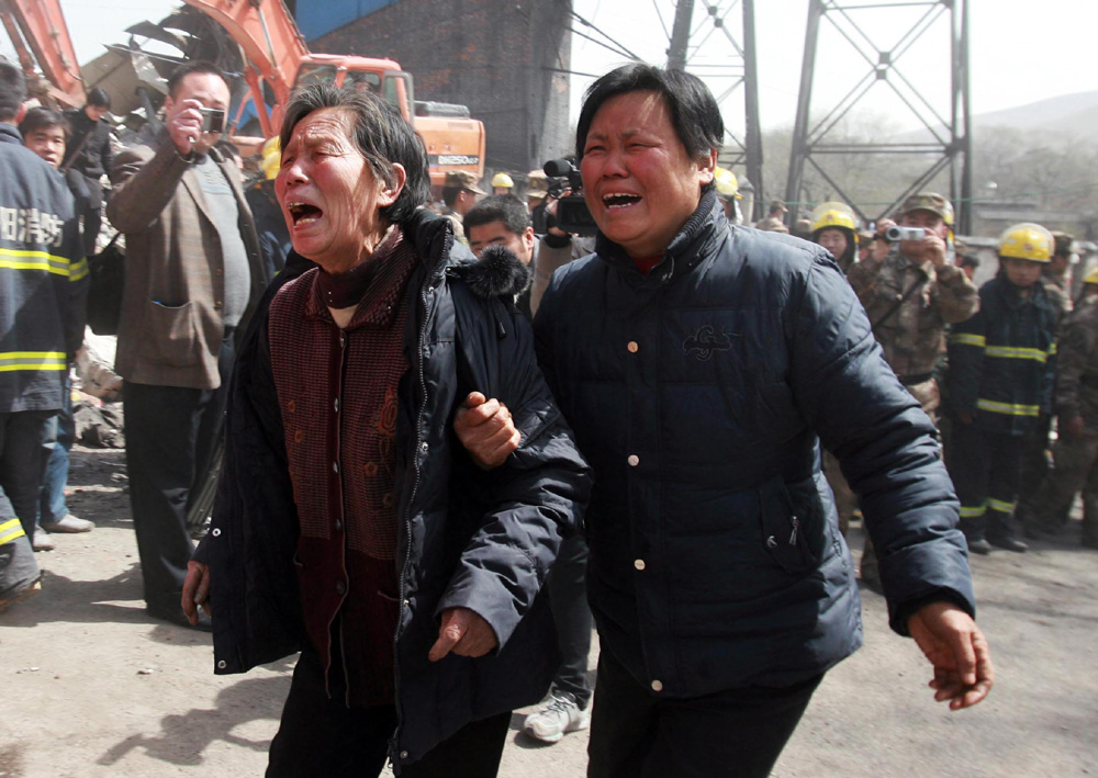 圖:二日,河南伊川,一名遇難礦工家屬痛不欲生(中新社)