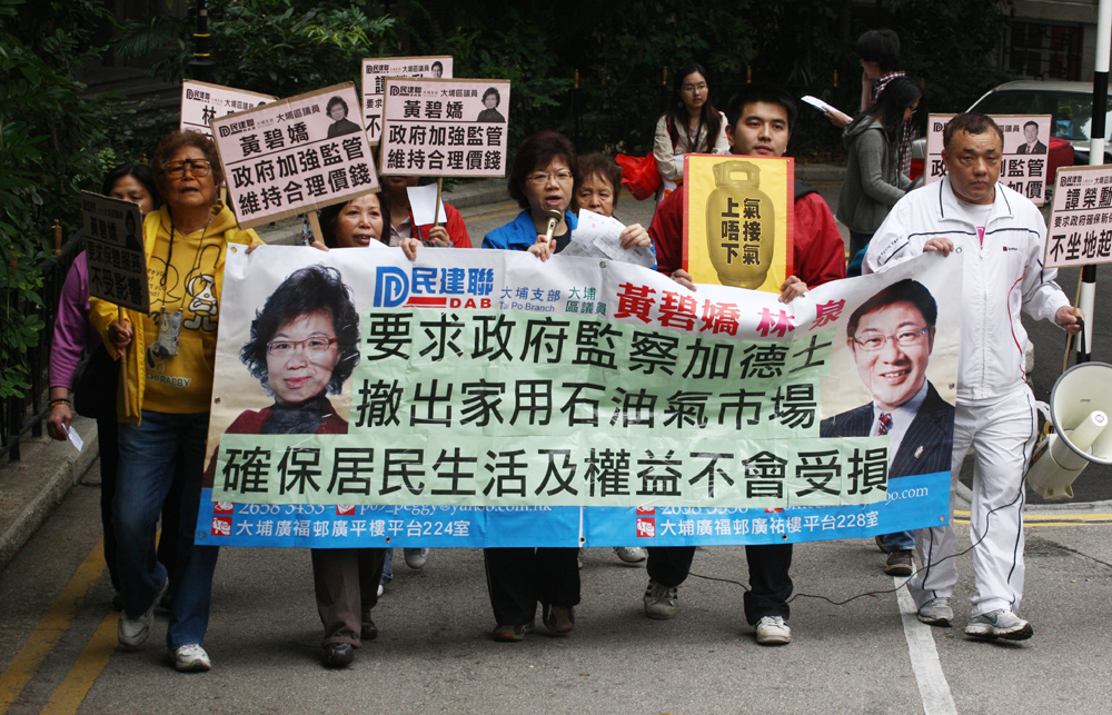 民建聯大埔支部主席、廣福邨區議員黃碧嬌表明,加德士為全港約十個屋苑提供家用石油氣服務,僅以廣福邨與宏福苑為例,已有八千多戶受影響,如過渡處理失當,影響會非常廣泛。民建聯昨日發起遊行,黃碧嬌聯同大埔支部副主席譚榮勳一行,到政府總部門外抗議,並向環境局遞交請願信,提出七點,要求局方作出監管。他們提出要求:政府須與加德士作良好溝通,做好過渡安排,免影響居民生活;當局需確保新供應商不會把成本轉嫁市民;防止新供應商乘市場競爭減少而加價;確保石油氣供應不會因過渡安排欠佳而中斷;要求新供應商要維持應有供氣水準;確保供氣安全;以及確保日後再出現同類情況,亦不會影響用戶。