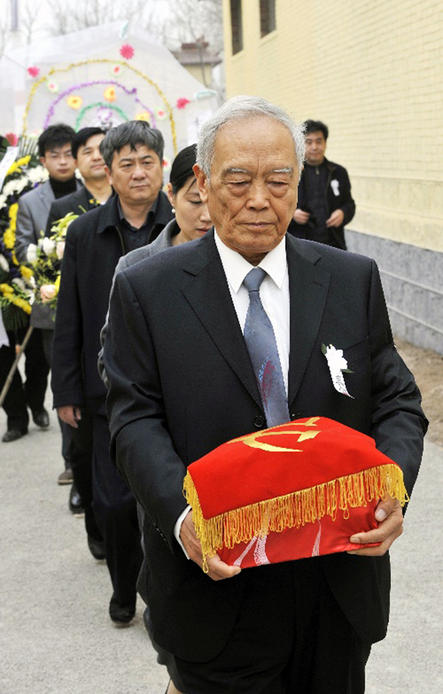 圖:季羨林兒子季承捧着父親骨灰回到故鄉(本報攝)