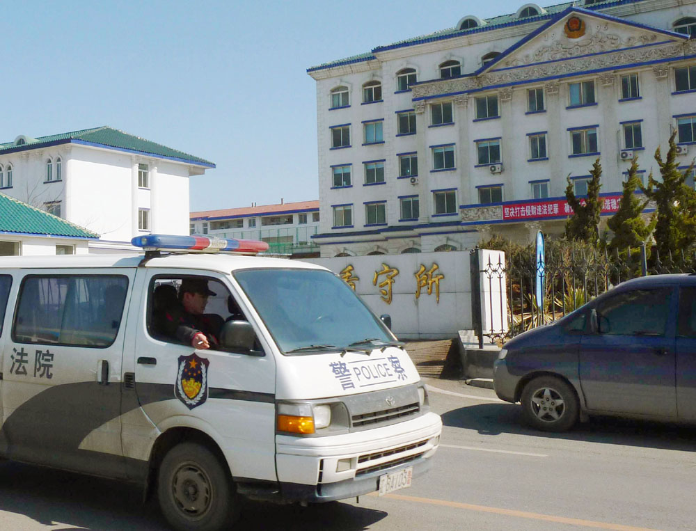 圖:六日,日本毒販赤野光信在遼寧省大連市監獄被執行死刑。圖為六日,一輛警車停在大連市一所監獄前(美聯社)