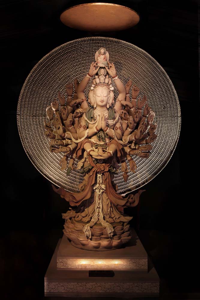 楊惠姍所創作的這尊七十六公分高的「千手千眼千悲智」,臨摹自敦煌莫高第三窟元代的千手千眼觀音壁畫,歷時三年半完成。以四米五高千手千眼觀音塑像原比例設計,以琉璃燒製,也是目前全世界所見最大的琉璃佛像造像。2008年列入美國康寧玻璃博物館《New Glass Review》的重要紀錄之中。而以琉璃燒製重現四米五高的立體佛像造像,更成為楊惠姍的「今生大願」,是她的琉璃佛像藝術裡最大的修持和宏願。