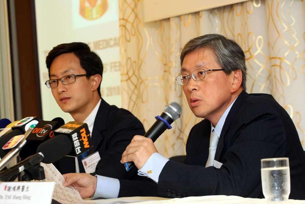 圖:醫學會會長謝鴻興(右)表示,不會釐定收費準則,市民嫌昂貴的話,可選擇其他醫生(黃洋港攝)
