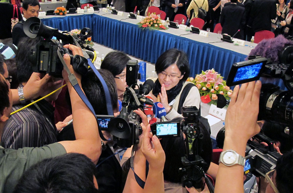 博鰲論壇兩岸企業家圓桌會議,討論兩岸簽署經濟協議(ECFA)後的商機,蕭至佑以一般與會者身份坐在圓桌旁聆聽,會後台灣媒體衝過公安防護線,將蕭至佑團團圍住。