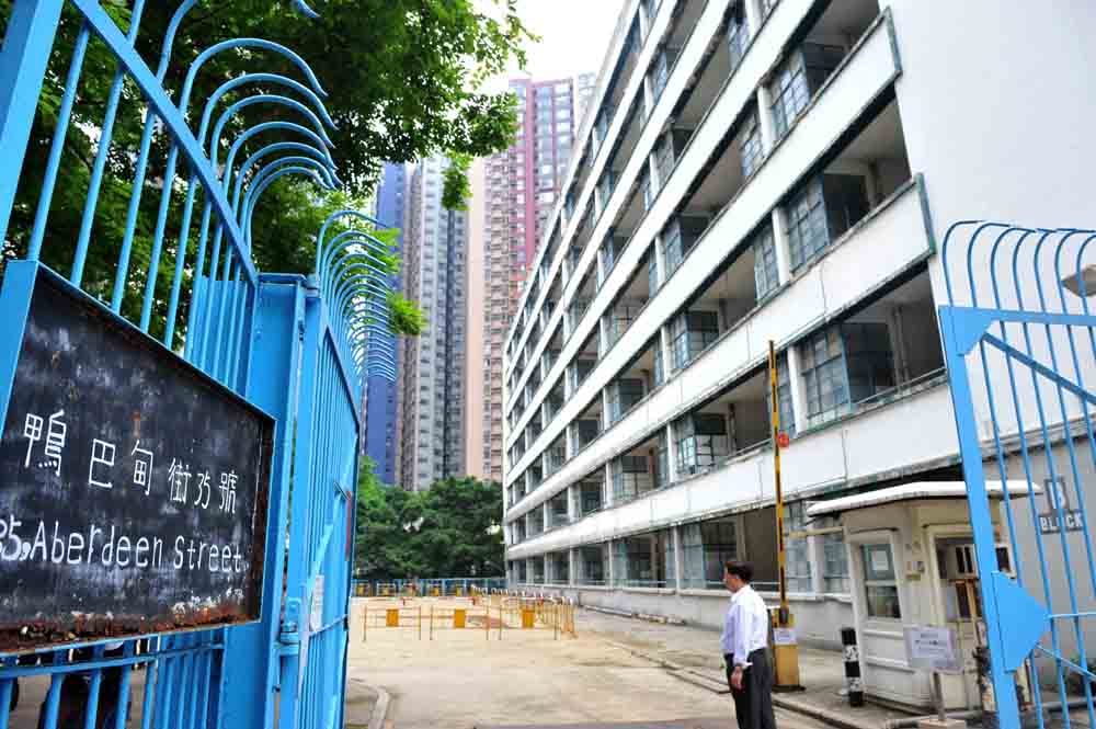 圖:荷李活道前已婚警察宿舍建於一九五一年,也是中央書院的舊址(本報攝)