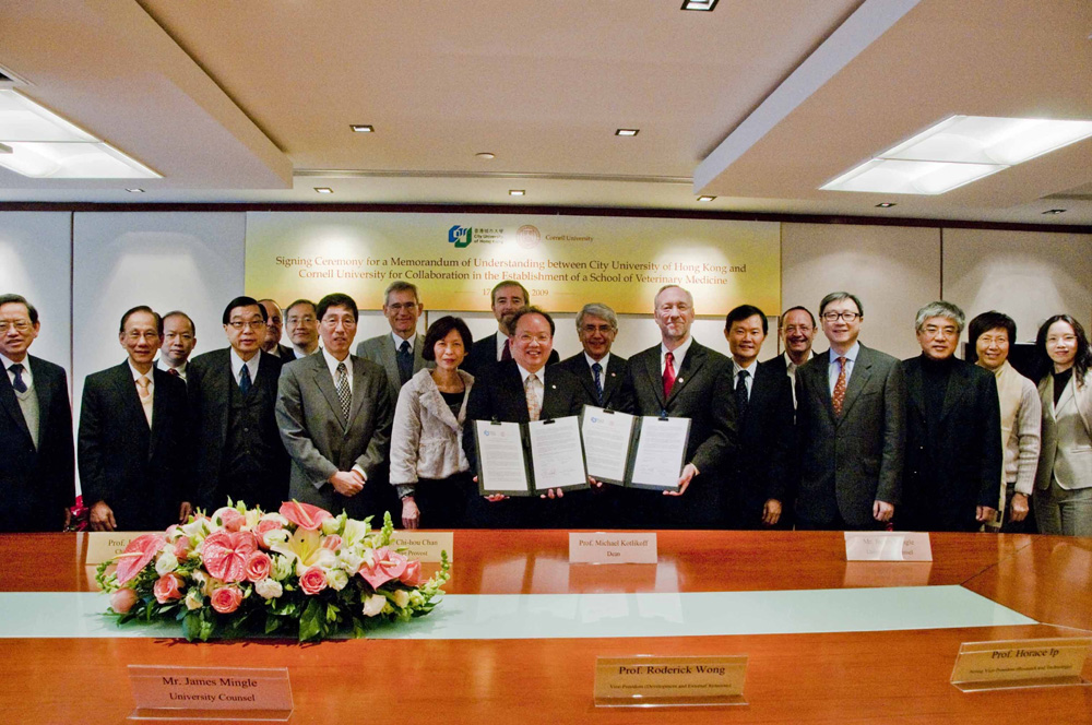 針對沙士、禽流感以至甲流等由動物傳染人類的疫症,而亞太地區無國際認可的獸醫學院,香港更全靠外來獸醫,城大在○八年底提出成立動物醫學院(即獸醫學院),繼而邀請前醫管局行政總裁何兆煒助陣,上月宣布獲美國康奈爾大學協助規劃六年制本科課程,預料首年招生三十人,呼籲教資會批准開設資助課程,不排除自資營辦。