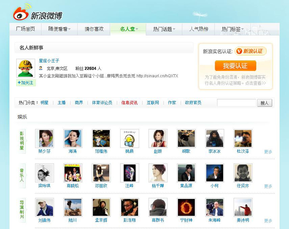 如內地新浪網就開設了新浪微博,並以邀請知名人士使用微博來推廣,港星如梁詠琪、杜汶澤、楊千嬅等人都加入其中。為確保真實度,網站會對參與的名人進行實名認證,用戶名之後帶有字母「V」,名人效應不可小視,明星隨意寫下的寥寥數語都能引來眾多粉絲追捧。網站還要求只有註冊用戶才可留言、轉載,不僅帶來高點擊率,也有了源源不斷的新用戶。類似的還有台灣著名博客網站─無名小站推出的嘀咕。