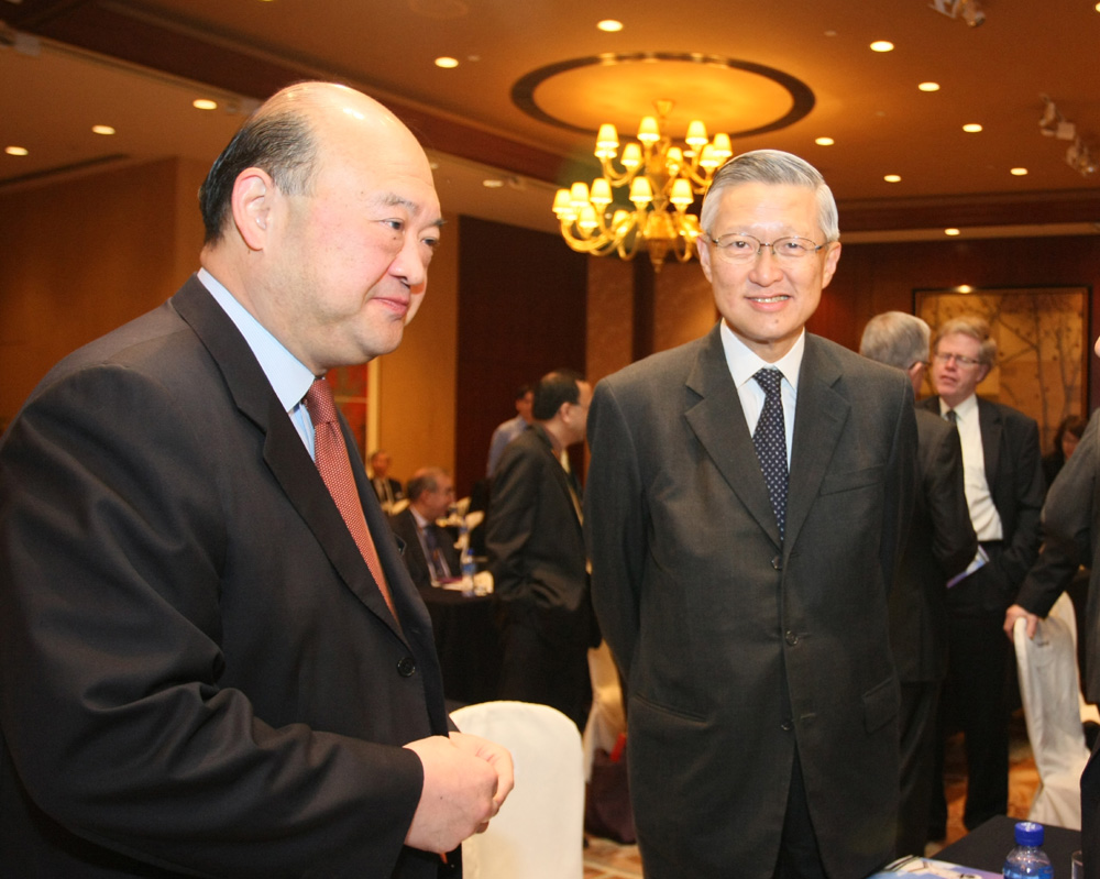 圖:李國能(右)與馬道立(左)言談甚歡,希望民事司法改革能成功在港推行(本報攝)
