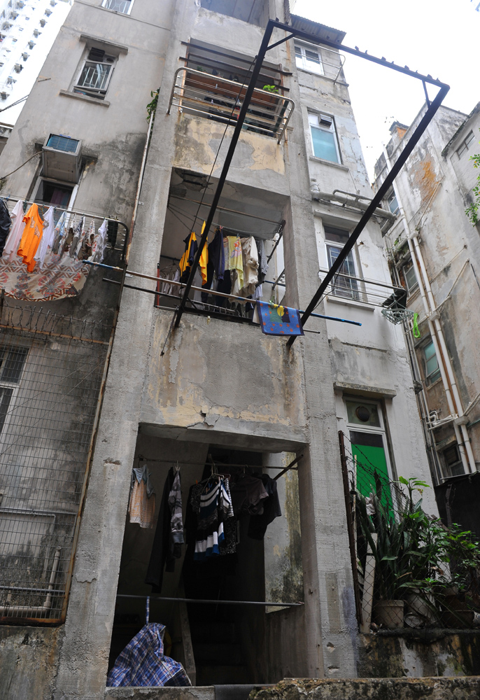 而住舊樓,環境雖較破舊,但想盡用買來的寸金尺土,只要沒鄰居投訴,住戶不單可將鞋放在門外,就是剛洗完的衣服、放雜物的紅白藍袋和盆栽,都能放於露台,用陽光消毒,讓雨水滋潤,可謂物盡其用。