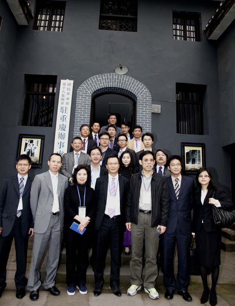 圖:香港青年才俊重慶參訪活動展開,考察重慶紅色文化及經濟發展,圖為唐淑蘭(前左三)、曾智雄(前中)、姜在忠(前右三)、霍啟山(前右二)等人在紅岩村當年國民革命軍第十八集團軍駐重慶辦事處外合影(本報記者鄭雷攝)