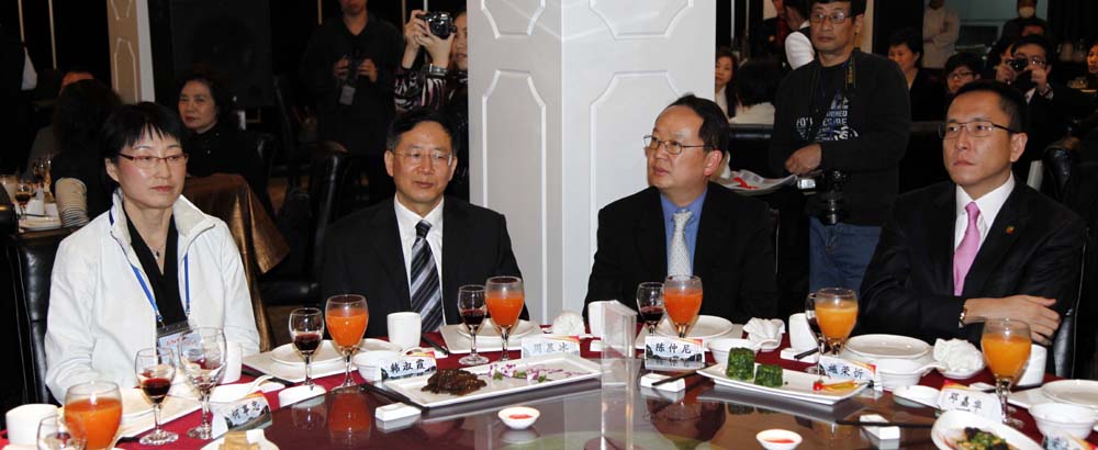 圖:(左起)中聯辦青年工作部部長韓淑霞、重慶市副市長周慕冰、副團長陳仲尼、副團長施榮忻在歡迎宴會上(本報記者鄭雷攝)