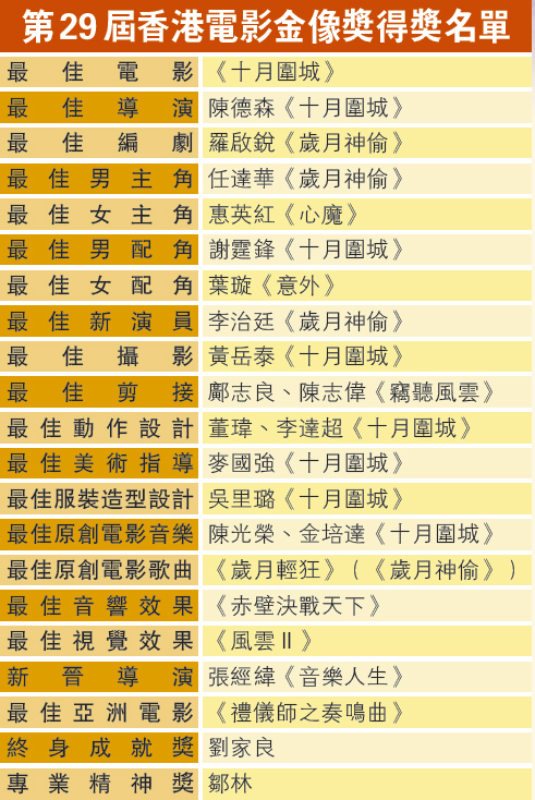 第29屆香港電影金像獎得獎名單