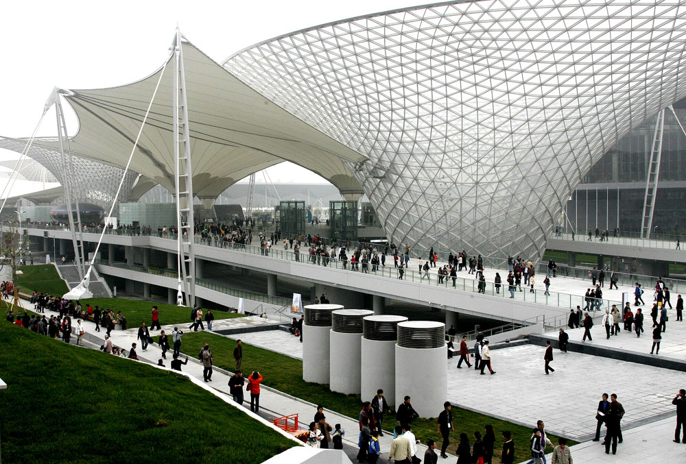 圖:上海世博園20日迎來首場試運營,遊客在世博軸景觀區參觀遊覽(新華社)
