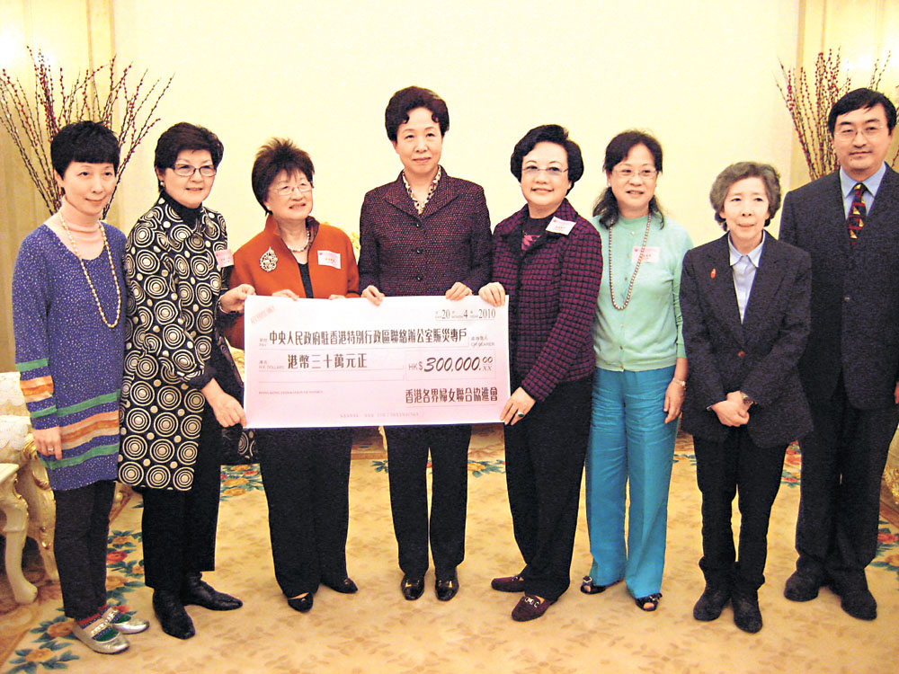 【本報訊】香港婦協一直關心內地婦兒發展,十多年來對扶貧、助學、賑災不遺餘力,為表達對青海玉樹地震受災姐妹及其家庭的關愛,特別在「香港婦協緊急援助基金」撥款三十萬元,由中聯辦郭莉副主任親自接受捐款支票。款項隨即將透過中聯辦的青海賑災專戶,轉交予青海省婦聯,讓玉樹縣姐妹們直接受惠,與家人攜手盡早重建家園。
