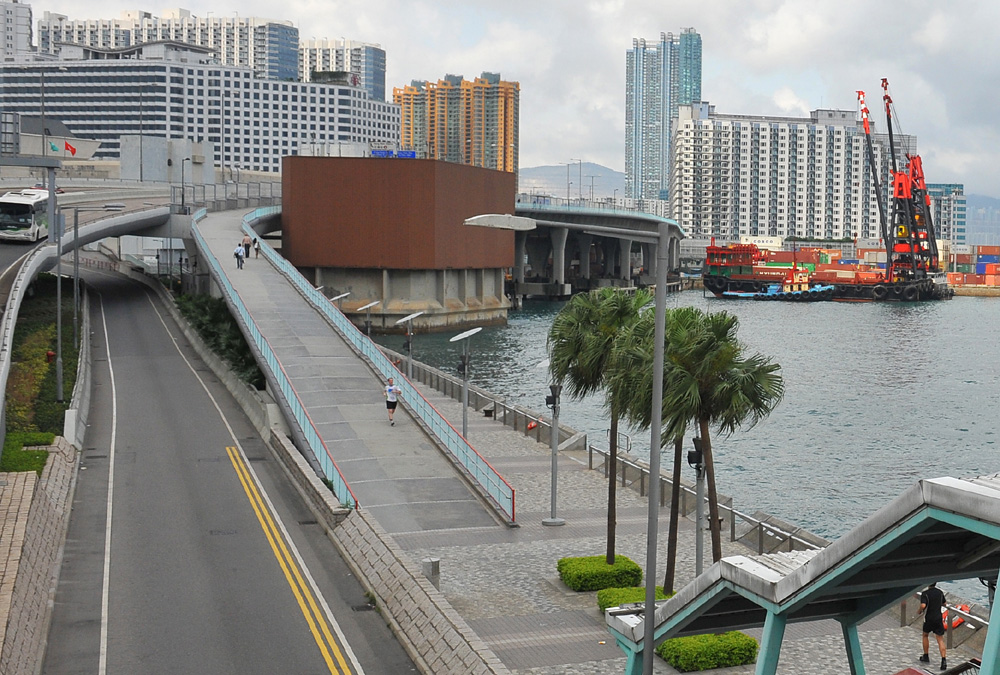圖:由尖東海旁通往紅磡的紅磡繞道天橋使用率偏低,只有緩跑及散步人士使用(本報攝)