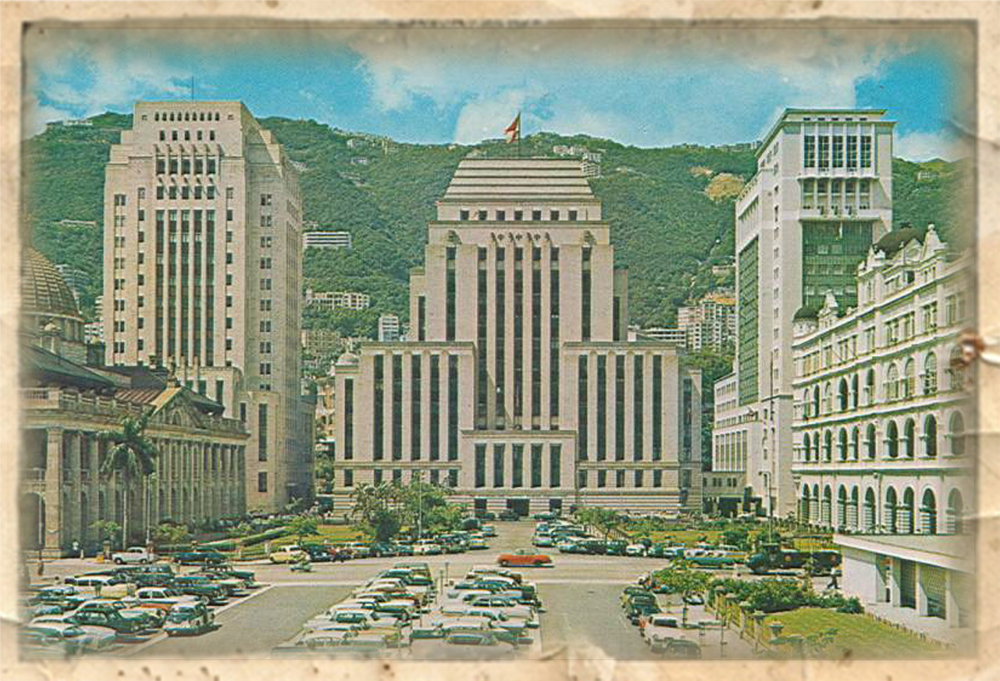 說回滙豐總行大廈,第一代可追溯至1865年,租用位於獲多利街(現稱銀行街)以及皇后大道交界的獲多利大廈。翌年滙豐收購了該段地皮,並於1886年建成第二代總行大樓,特別的是大樓前後採用了不同的建築風格設計,面向皇后大道一面築有多根希臘羅馬式巨柱及八角形大圓拱頂,屬維多利亞式建築;背面向皇后像廣場一方則是樓高4層,築有典雅拱形迴廊的文藝復興式建築,與廣場上四周聳立的立法會大樓、香港會、大會堂及太子行、皇后行等,形式統一的歐陸古典風格建築群。到了1933年,滙豐總行再次拆卸擴建,並連同旁邊大會堂西翼一同清拆,原址於1935年建成第三代大樓,採用的是當時走在時代尖端的芝加哥學派建築風格,特點在於建築物外貌不再拘泥於文藝復興以來的古典形制,減省大量繁瑣的雕飾,只從實用出發,強調功能主義,建築以矩形立方體為主,並引領以鋼筋及混凝土築起摩天大樓的潮流。而樓高70米、共13層的第三代滙豐總行,自1935年落成後便成為全港最高建築物,直至1950年才由旁邊新建的中國銀行大廈取代。下期續說現今的第四代滙豐總行。