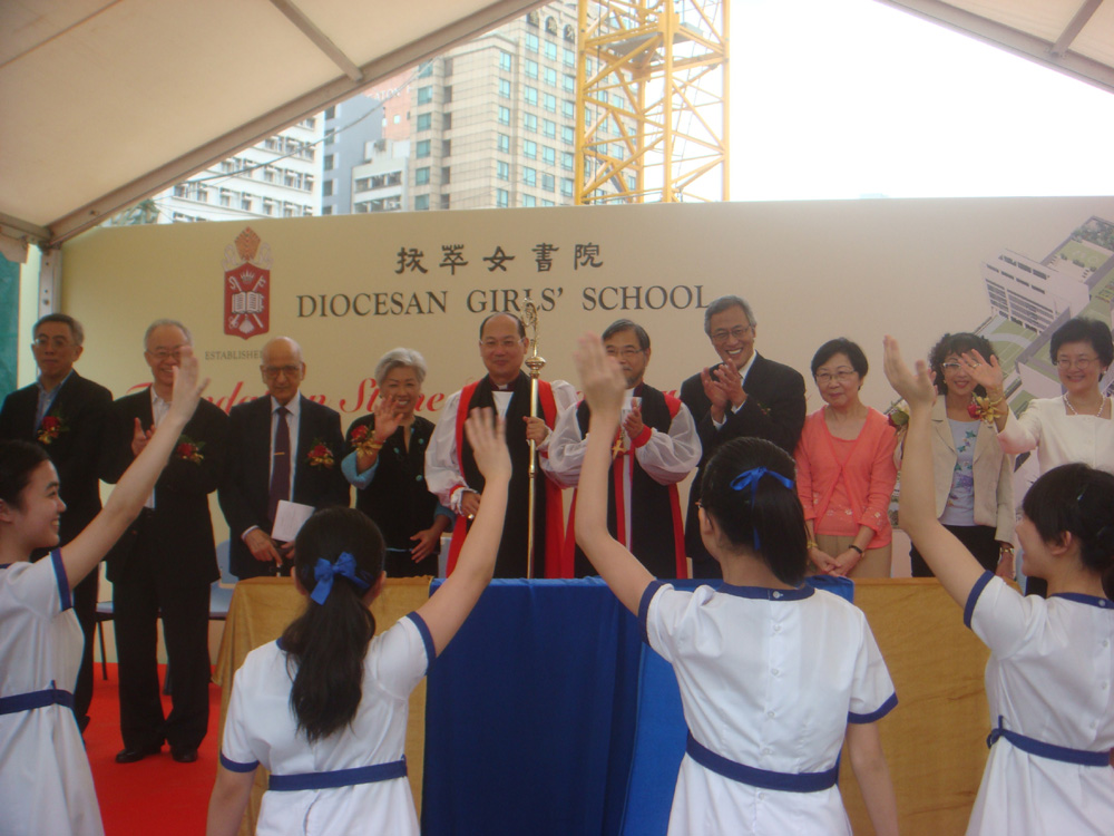該校昨日為新校舍重建舉行奠基儀式,香港聖公會教省主教長鄺保羅以專門特製的灰匙主持儀式,灰匙以五顆藍晶石嵌砌而成,代表女拔萃五項支柱:學術、體育、音樂、社區服務和靈性栽培。出席奠基儀式的還有女拔校董會主席蘇以葆、校監何高雪瑤、拔萃女書院小學部校長戴何天美等。
