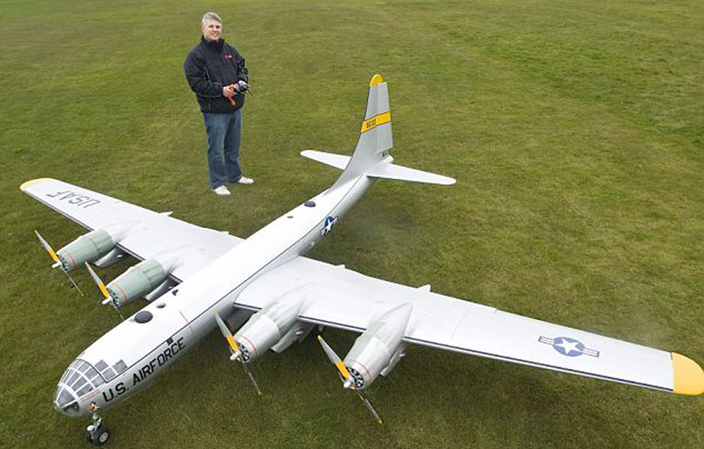 這名四十六歲模型製造者製造模型飛機已有三十年,並決定從草圖取材,創造一架電動版的一九五○年代轟炸機。