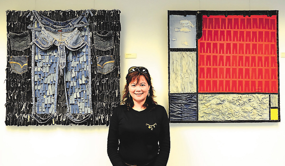 圖:曾陳桂梅以牛仔布為創作媒介