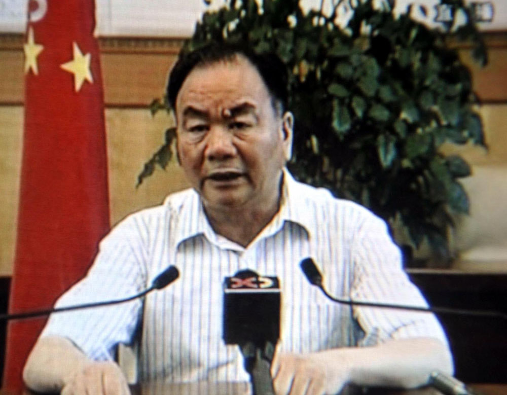 圖:二○○九年七月七日,時任新疆維吾爾自治區黨委書記王樂泉就烏魯木齊「七·五」打砸搶燒嚴重暴力犯罪事件發表電視講話(資料照片)