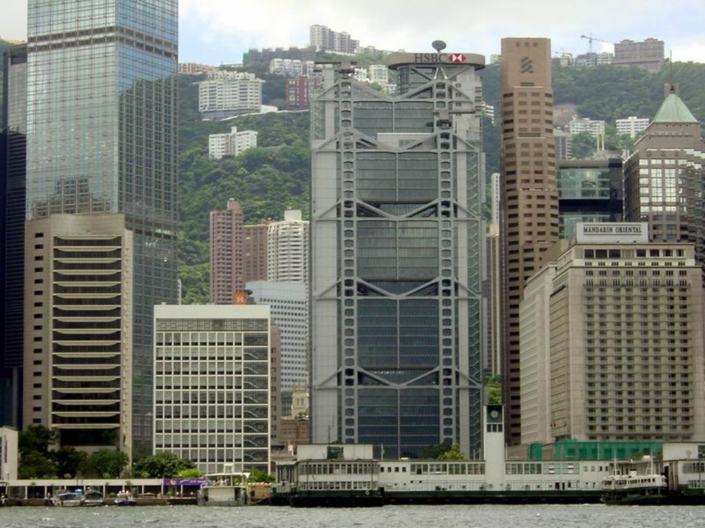 圖:第四代滙豐總行(中)建於上世紀80年代,是當時全球造價最高的大廈