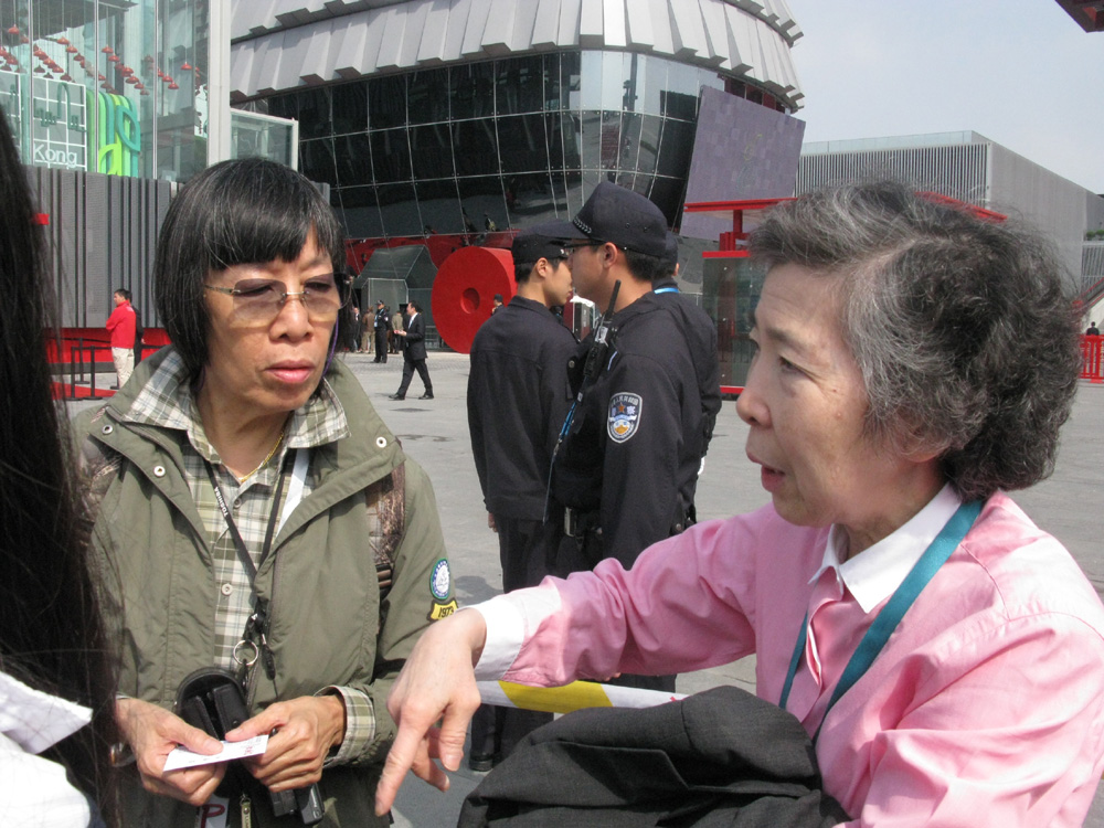 上午九時左右,香港館開幕儀式尚未結束,全國政協常委伍淑清便出現在場外焦急等候。她覺得香港館「很靚」,還說自己七零年曾參觀世博,今日世博香港面對全球二百多個城市,不僅同澳門、台灣比較,是和全世界比較,「香港人做事心胸應該大點」。