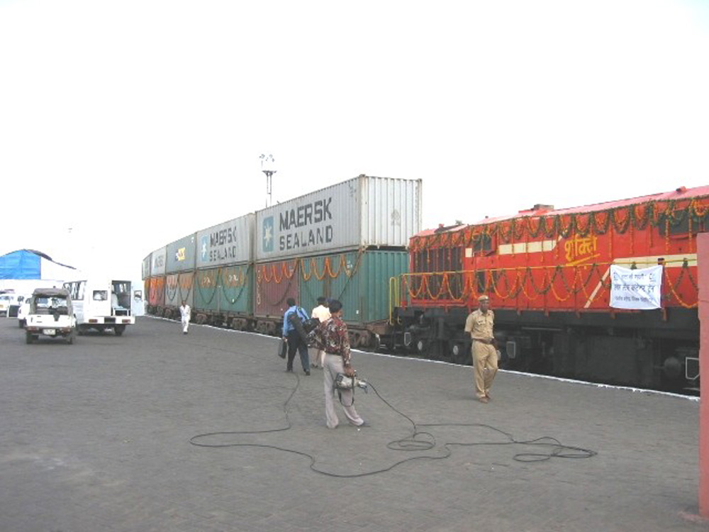 圖:印度鐵路集裝箱有限公司在孟買貨運中心裝雙層貨櫃
