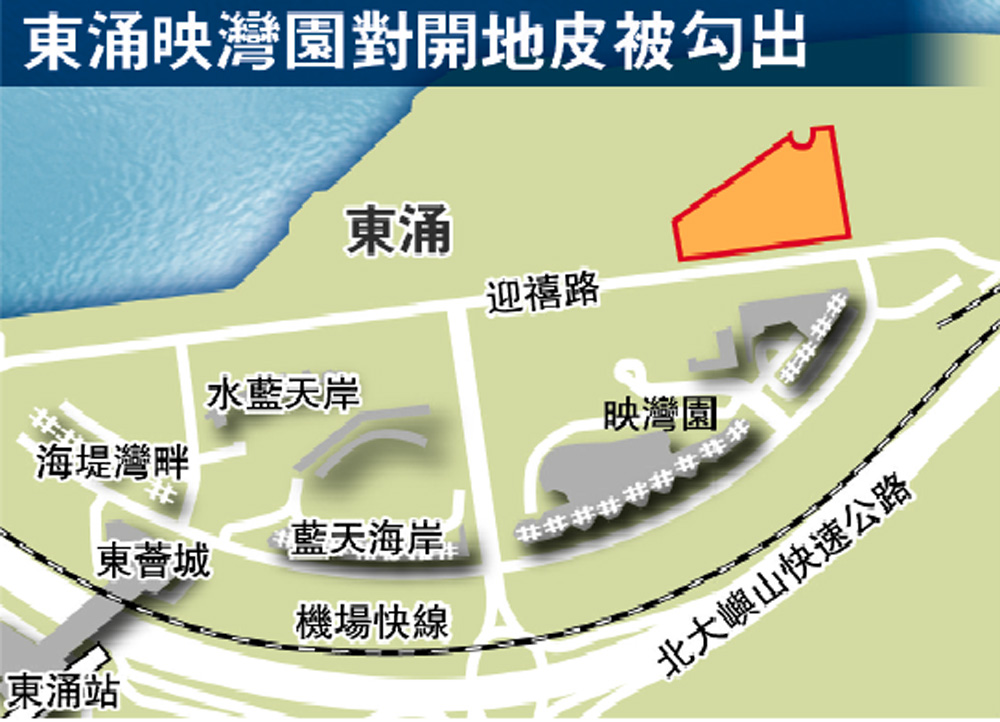 圖:東涌55B區映灣園旁地皮(橙色位置),下周二拍賣