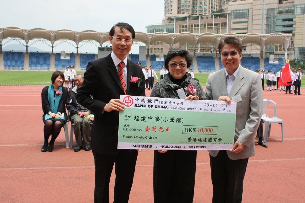 圖:施維雄代表向福建中學(小西灣)捐款贊助校運會