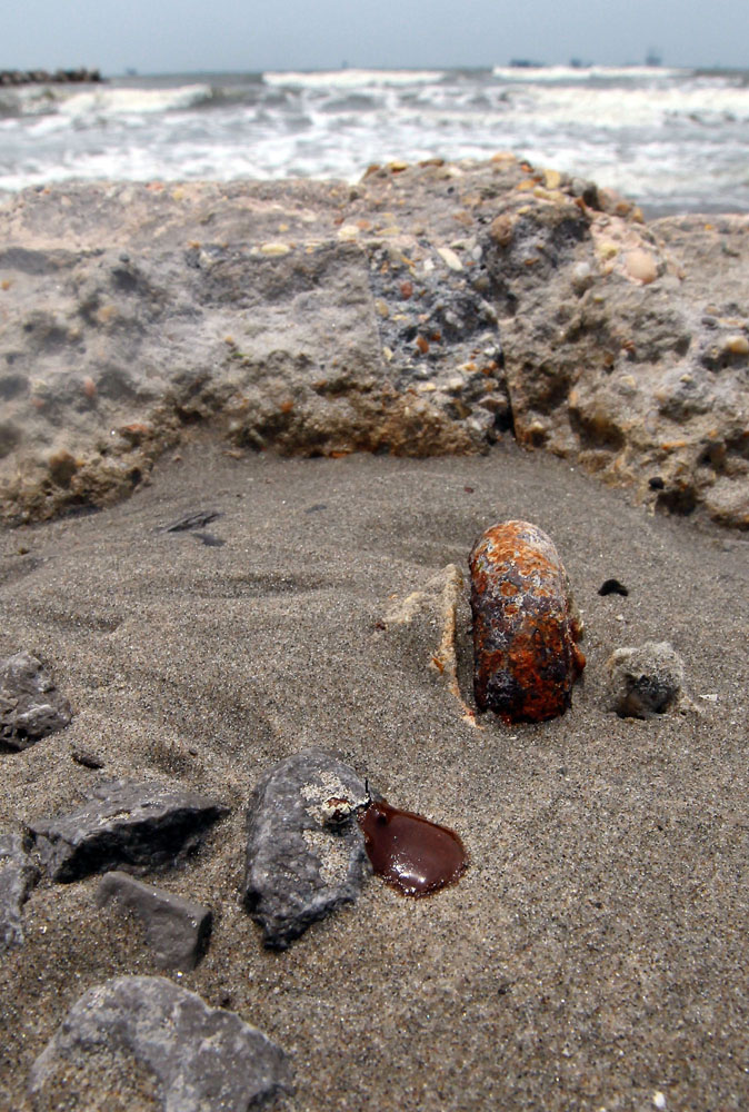 圖:美國路易斯安那州佛爾匈港沙灘懷疑受到原油泄漏的污染\法新社