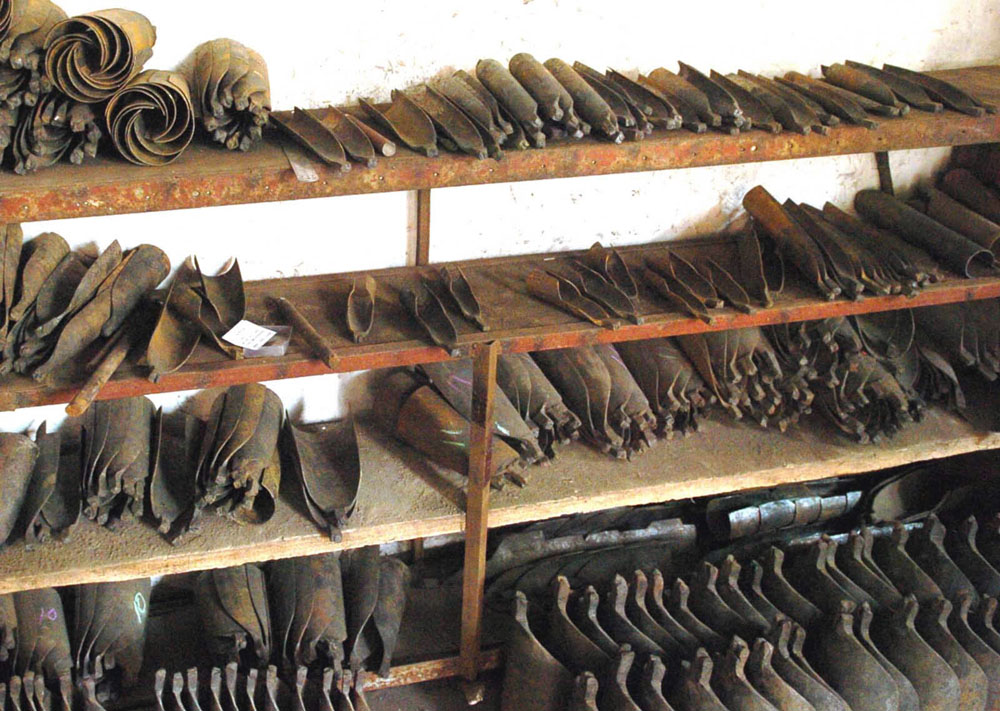 洛陽鏟用金屬鍛鑄而成,截面呈月牙狀。使用時,用力將它插入土中再向上提起,鏟頭就能帶出土來。根據土的質地和顏色,有經驗的盜墓者就能判斷此處是否有墓葬。洛陽鏟不僅受到盜墓者的鍾愛,專業考古人士也將其視為不可或缺的探測工具。