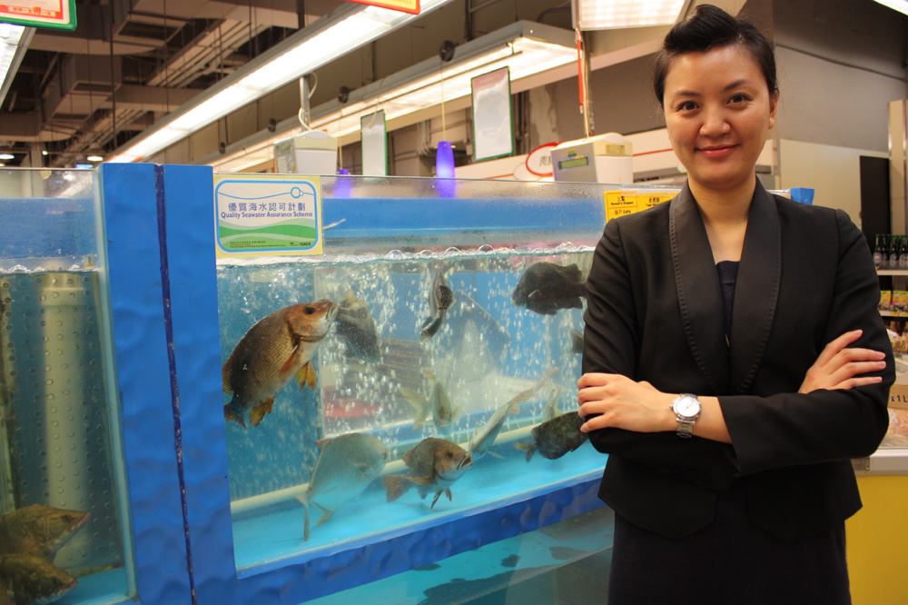 擁有二百五十間分店的惠康超級市場,全部二十七間出售新鮮魚的分店均已獲發優質海水標誌。市務總監冼碧筠稱,注重新鮮食品質素是社會趨勢,因此當「優質海水認可計劃」甫一推出,已即時申請加入。